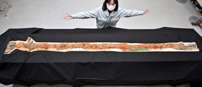 Viện khảo cổ học đã loại bỏ bụi bẩn bám trên bề mặt thanh kiếm trong quá trình bảo quản, đồng thời kiểm tra hiện vật một cách cẩn thận.