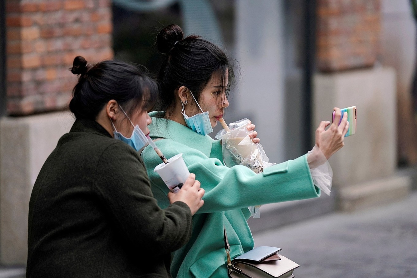 Hai cô gái uống trà sữa tại Vũ Hán, Trung Quốc năm 2020. Ảnh: Reuters