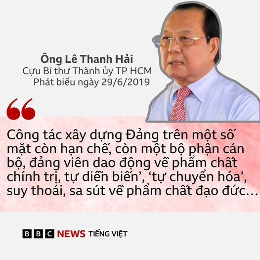 Đây là phát biểu của ông Lê Thanh Hải, cựu Bí thư Thành ủy TP HCM, vào ngày 29/6/2019 trong tham luận tại hội thảo khoa học "50 năm Đảng bộ, chính quyền và nhân dân TP HCM thực hiện Di chúc của Chủ tịch Hồ Chí Minh".