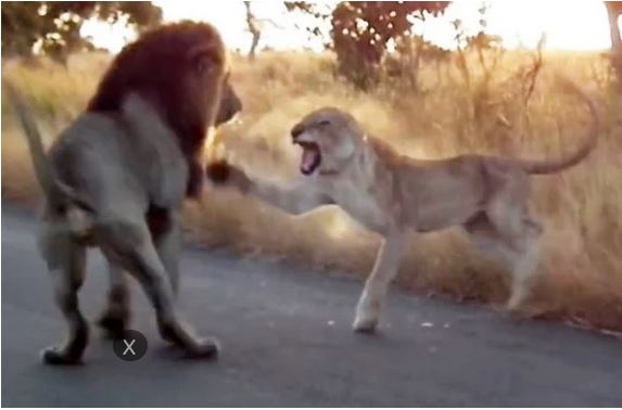 Trong một đoạn clip được quay chụp tại Công viên Quốc gia Kruger, Nam Phi, hình ảnh sư tử cái vùng lên, đấu tranh trước sư tử đực lại được tái hiện một cách rõ ràng, chân thực nhất.