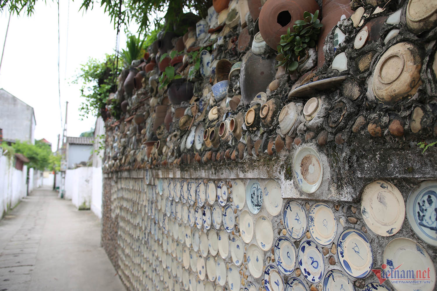 Bức tường bao được làm từ nhiều đĩa cổ. Ảnh: Nhị Tiến