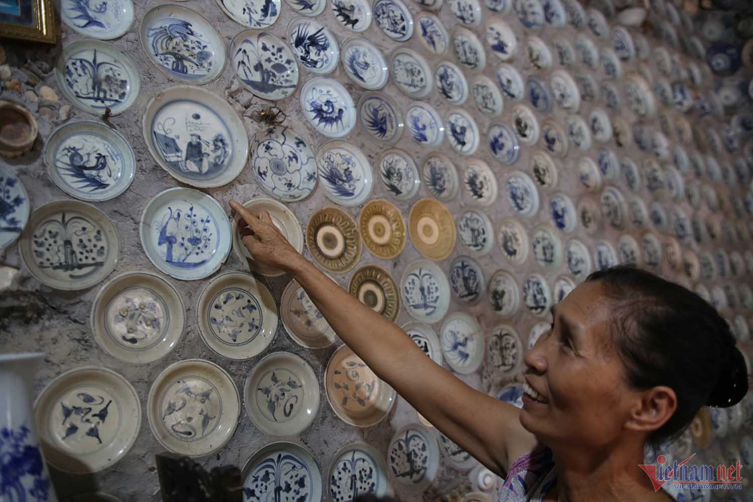 Xung quanh ngôi nhà đều được gắn bát, đĩa cổ. Ảnh: Nhị Tiến
