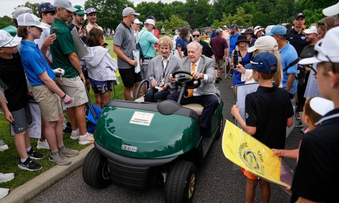Nicklaus lái xe vào sân Muirfield, nơi tổ chức Memorial, ngày 6/6. Ảnh: USA Today