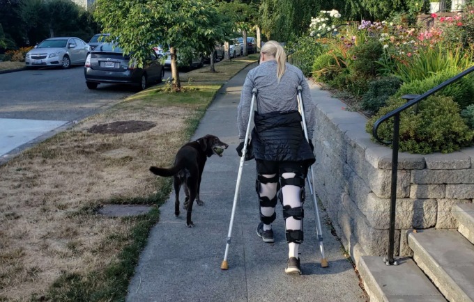 Cú ngã đã khiến bà Lesley bị tổn thương nghiêm trọng cơ tứ đầu, phải trải qua nhiều cuộc phẫu thuật.