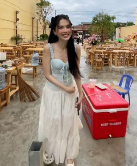Trong đoạn clip được chia sẻ, Ngọc Trinh tận tay làm những công việc nhỏ nhất, từ lau bàn ghế đến bày trí khu vực ăn uống, làm sao để ngày mở bán được chỉn chu nhất.