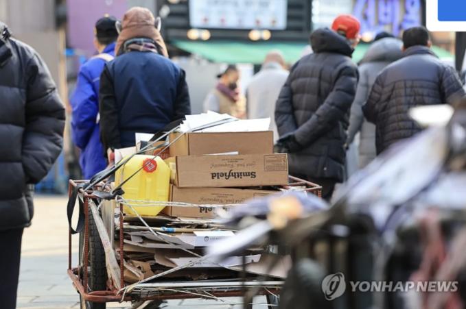 Cứ 650 người Hàn Quốc từ 65 tuổi trở lên lại có hơn một người nhặt phế liệu. Ảnh: Yonhap