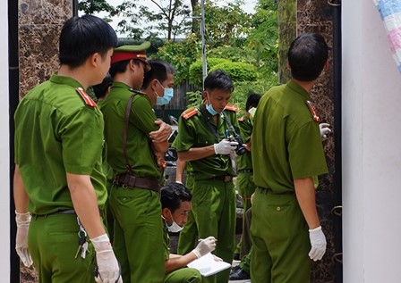 Công an đang tiến hành khám nghiệm hiện trường vụ án mạng giết người. Ảnh: T.L