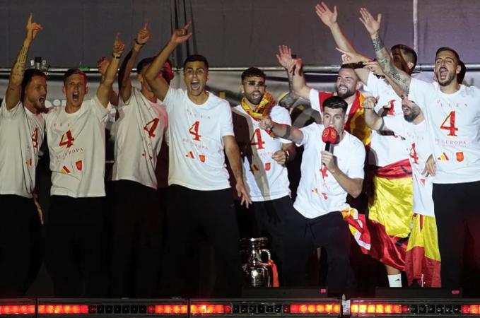 Giữa không khí cuồng nhiệt với biển người hâm mộ tại quảng trường Cibeles tối 15/7, Morata và Rodri đã hát vang câu "Gibraltar là của Tây Ban Nha".