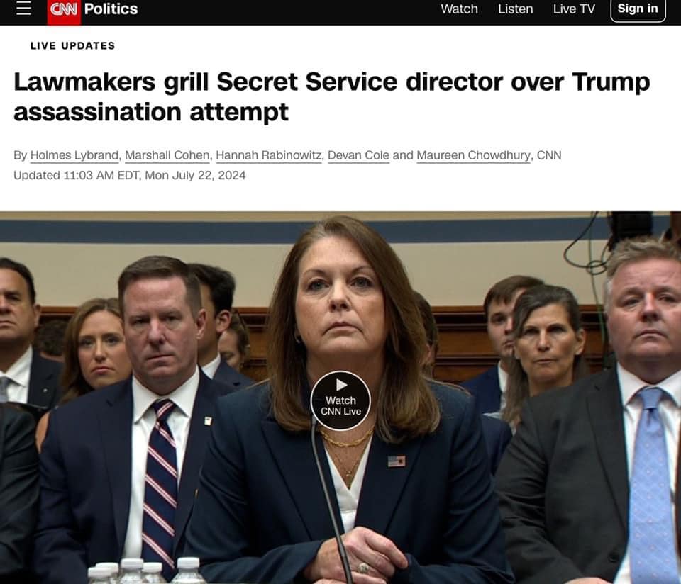 Khi được đặt câu hỏi tại sao cuộc biểu tình được phép tiếp tục ngay cả khi mọi người trong đám đông có thể nhìn thấy Thomas Matthew Crooks trèo lên mái nhà trong khoảnh khắc trước vụ nổ súng, thím Kimberly Cheatle cho biết cơ quan của thím vẫn đang xem xét thông tin liên lạc vào ngày hôm đó với địa phương qua chuyện kiểm tra trên thực địa.