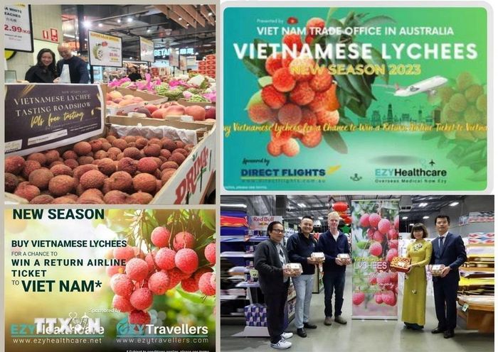Một số hoạt động xúc tiến vải tại Australia các mùa vụ gần đây do Cơ quan Thương vụ thực hiện như đấu giá, treo thưởng vé máy bay, dùng thử, quảng cáo trên nền tảng trực tuyến có lượng truy cập lớn. (Ảnh: TTXVN phát)