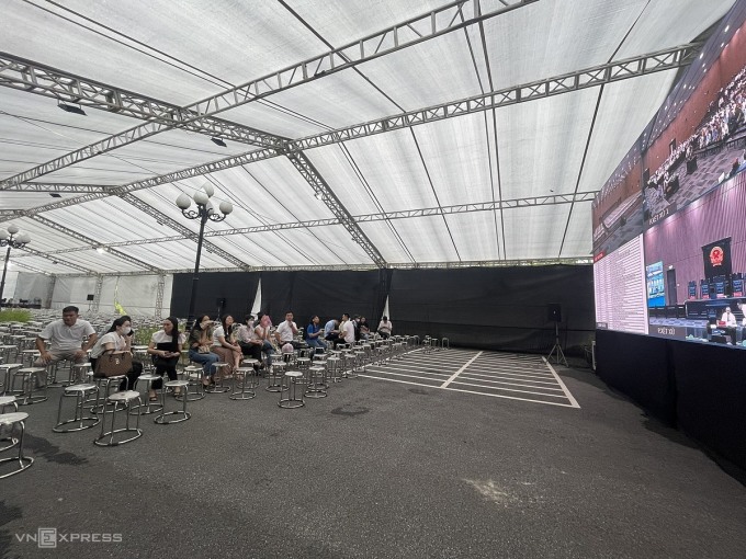 Ngày 22/7, rạp ngoài trời được TAND Hà Nội bố trí cho các nhà đầu tư theo dõi phiên tòa. Ảnh: Viết Tuân