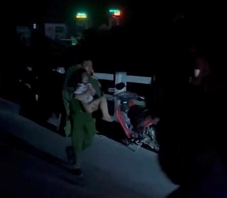 Khi lực lượng công an đến hiện trường phát hiện 1 nam thanh niên ôm theo một cháu gái khoảng 6 tuổi, tinh thần không ổn định. Tổ công tác đã cố gắng tiếp cận, thuyết phục, động viên tinh thần của nam thanh niên.