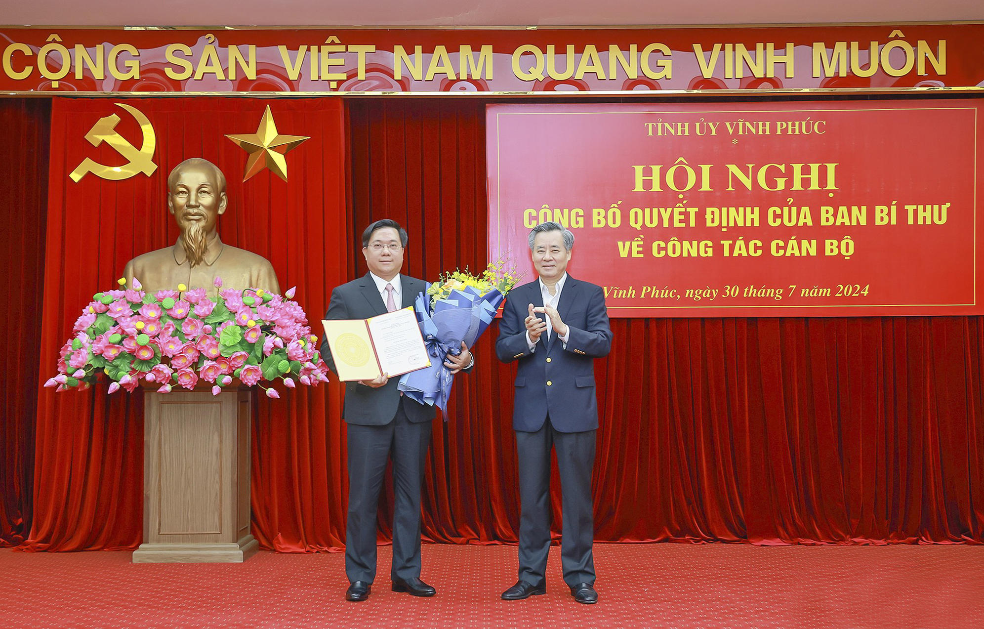 Sáng 30/7, tại hội nghị về công tác cán bộ do Tỉnh ủy Vĩnh Phúc tổ chức, Vụ trưởng Địa phương 1, Ban Tổ chức Trung ương Nguyễn Văn Tùng công bố quyết định của Ban Bí thư về nhân sự.