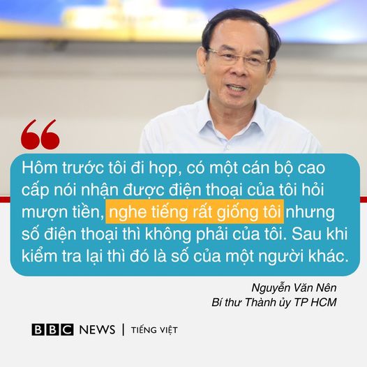 Bí thư Thành ủy TP HCM Nguyễn Văn Nên - trưởng Ban chỉ đạo cải cách tư pháp TP HCM - chia sẻ trong Hội nghị sơ kết công tác cải cách tư pháp sáu tháng đầu năm 2024 cho biết "đến tôi cũng bị giả danh để mượn tiền".