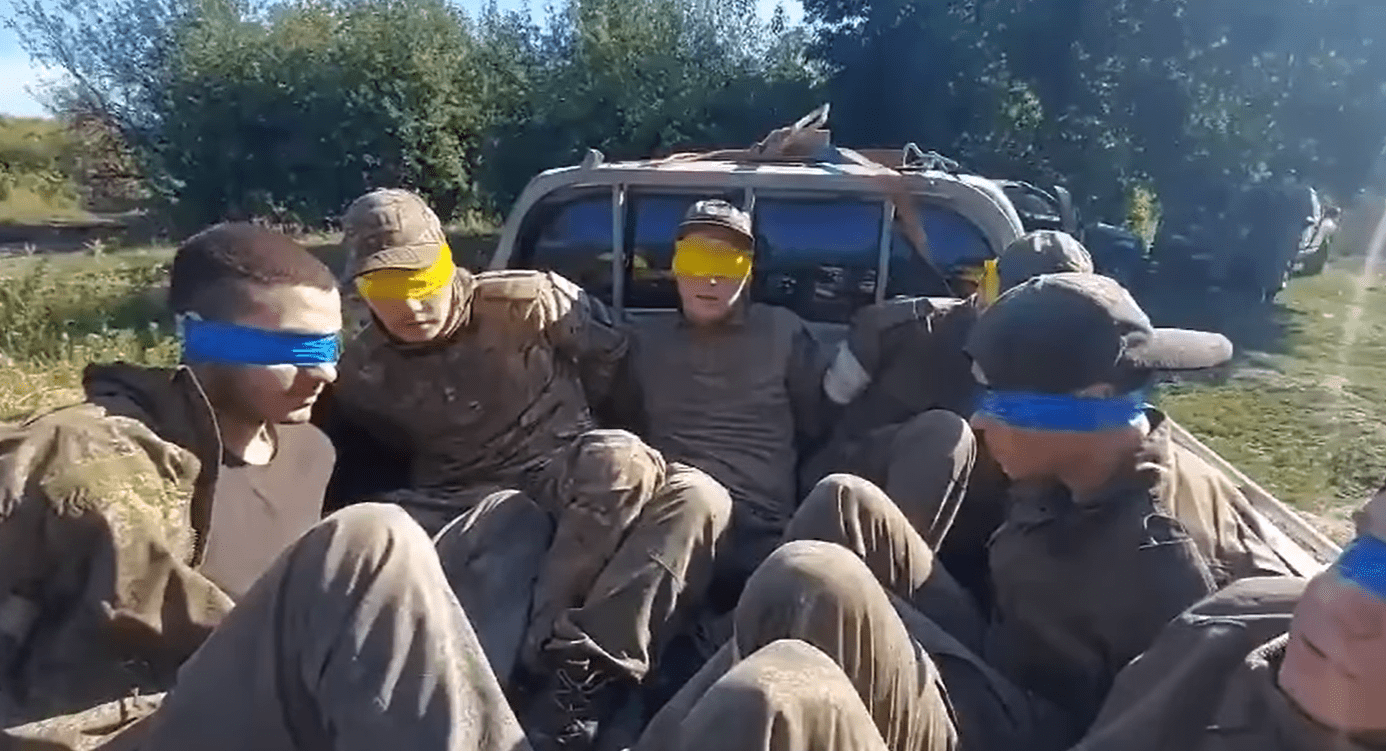 Tù binh Nga trong cuộc tấn công đột kích mới nhất của Ukraine (Chụp lại màn hình Truyền hình Ukraine.ua)