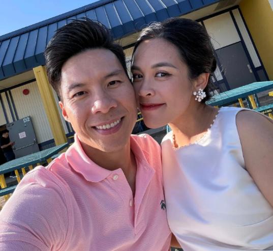 Theo hình ảnh được chia sẻ, Quốc Nghiệp cầm máy selfie cùng bà xã. Cư dân mạng còn chú thích cho bức ảnh này bằng dòng trạng thái: "Mới xa Việt Nam chưa được bao lây mà nhìn vợ chồng khác quá".