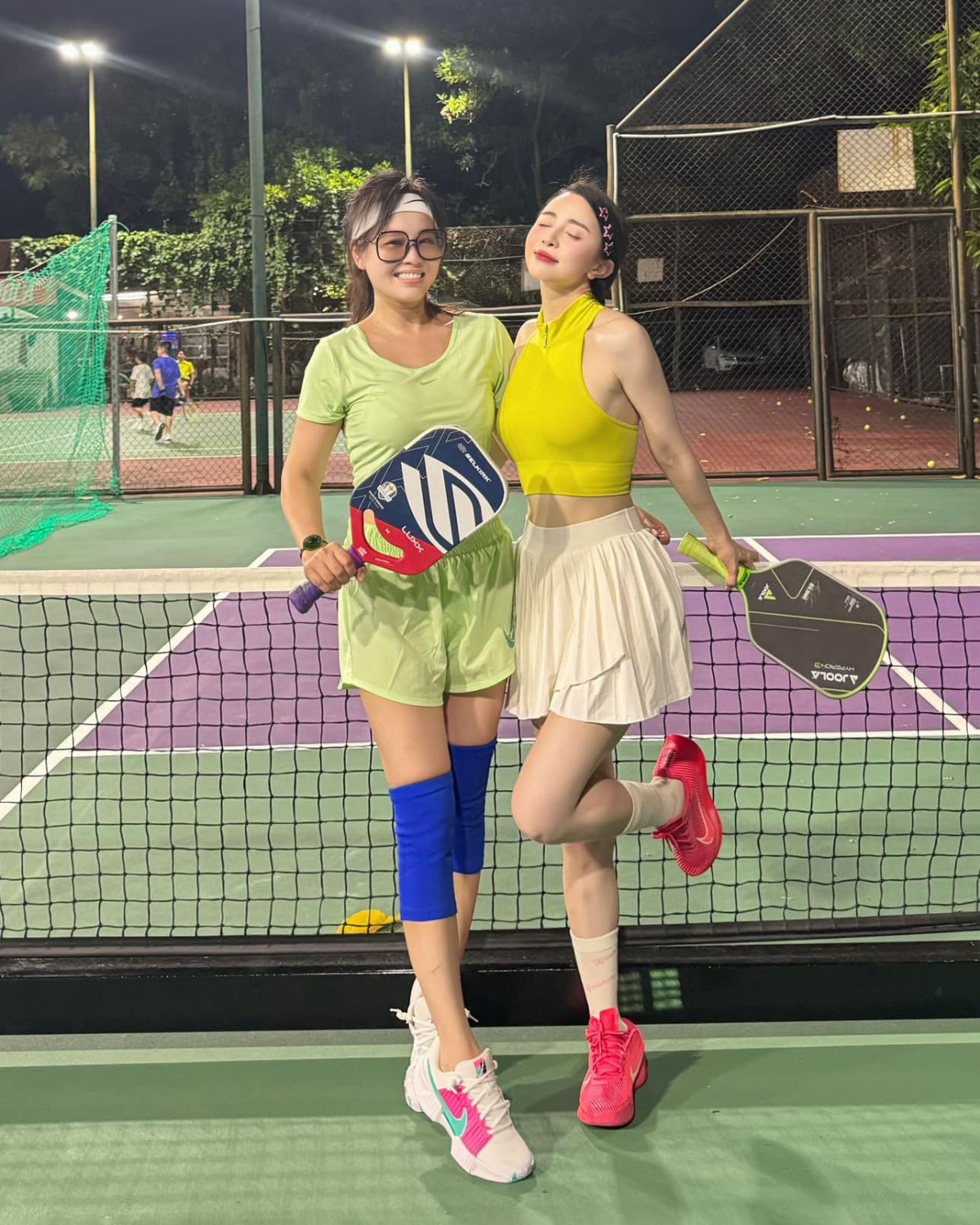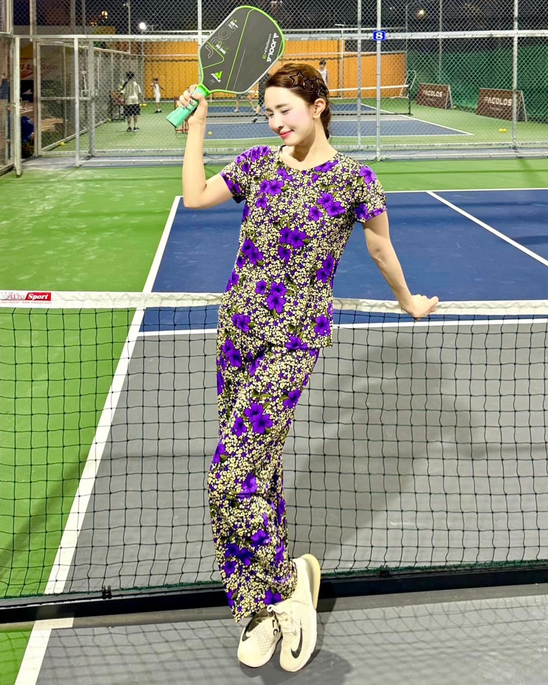Mỗi lần chơi pickleball, Quỳnh Nga đều tập 'mướt mồ hôi'. Bên cạnh đó, cô tranh thủ chụp hình khoe outfit.