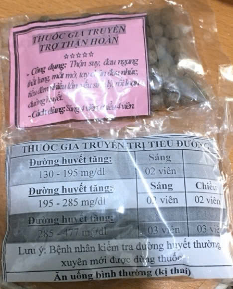 Thuốc gia truyền trị tiểu đường bệnh nhân mua trên mạng. Ảnh: BVCC