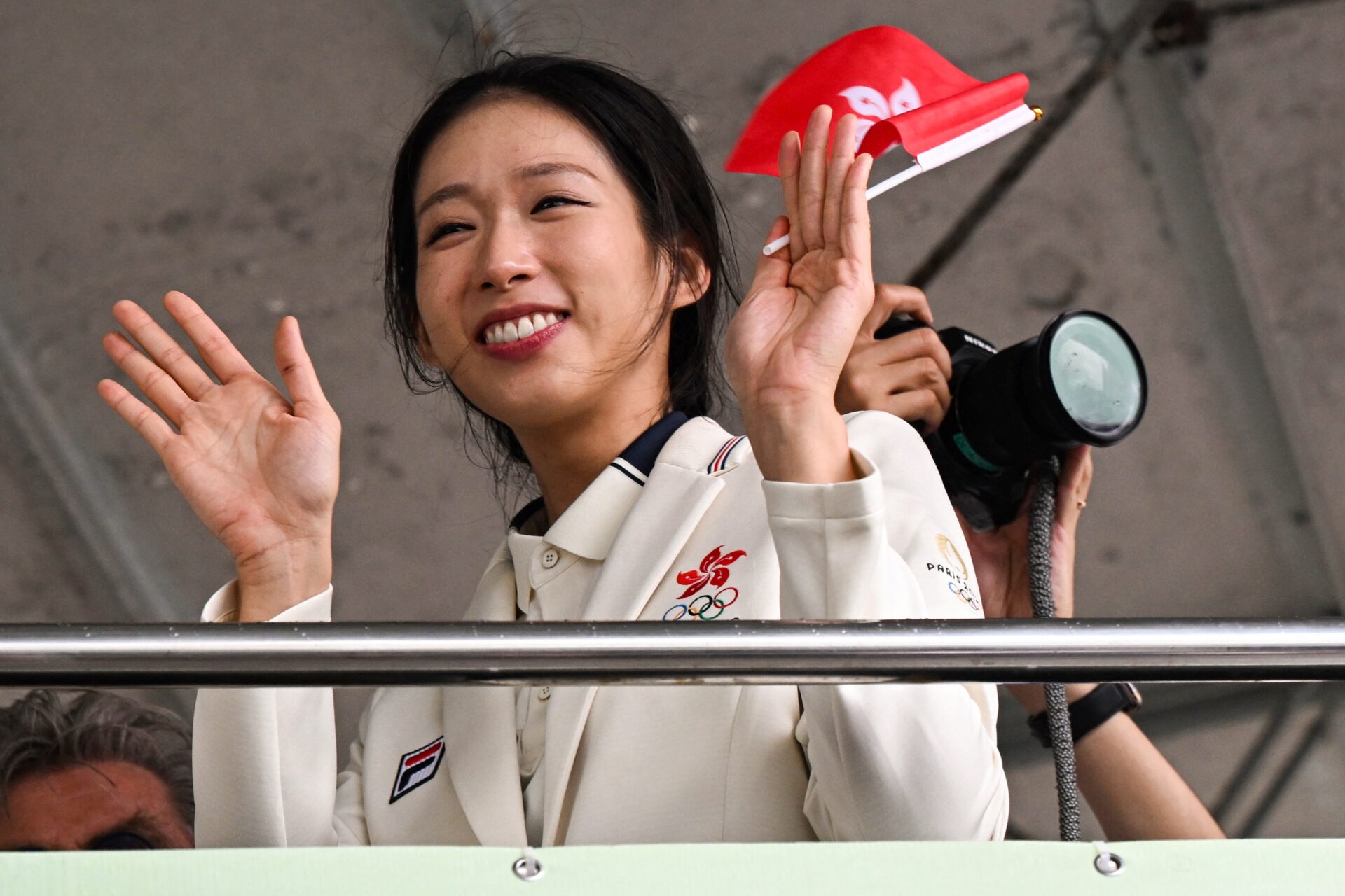 Vivian Kong (trong hình) và Cheung Ka Long của Hồng Kông được thưởng khoảng $770,000 cho huy chương vàng môn đấu kiếm. (Hình: Peter Parks/AFP via Getty Images)