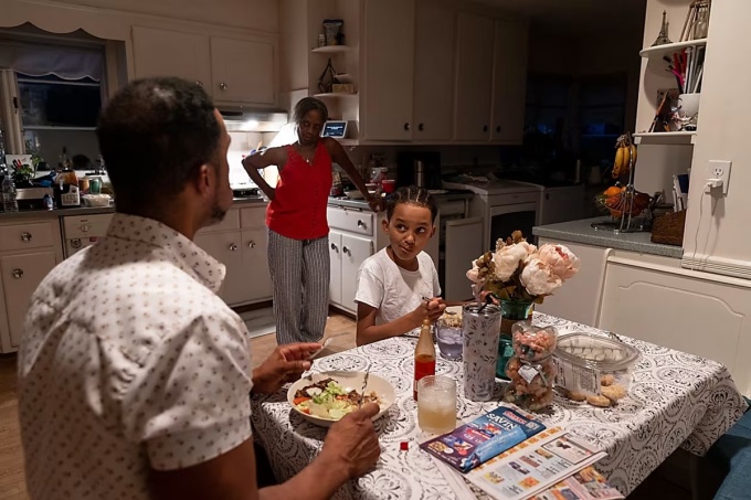 Thomas cùng mẹ vợ và con trai dùng bữa tối tại nhà ở Mount Vernon, New York. Ảnh: WSJ