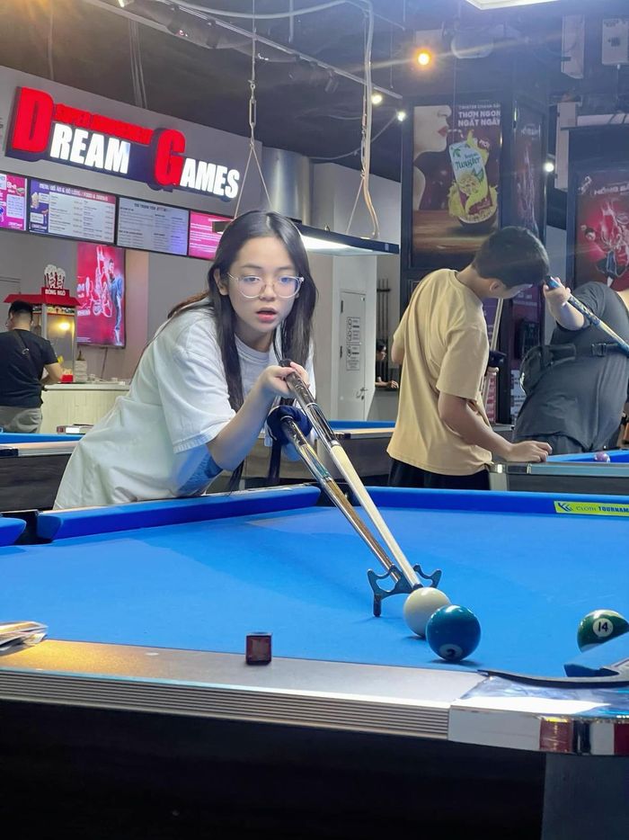 Theo đó, Chu Diệp Anh và cô bạn thân vừa đi chơi bida cùng nhau. Cả hai diện trang phục đơn giản, năng động, thả dáng như người mẫu tại phòng tập. “Con gái” Việt Anh cho biết, đây là môn thể thao thú vị đối với cô. “Lần đầu con chơi bộ môn này cả nhà ạ, cũng hay hay”, Chu Diệp Anh chia sẻ.
