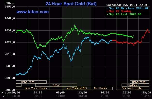 Chốt phiên giao dịch 23/9, mỗi ounce vàng thế giới giao ngay tăng 6 USD lên 2.627 USD. Đây là mức cao kỷ lục mới. Trong phiên, giá có thời điểm chạm 2.635 USD.
