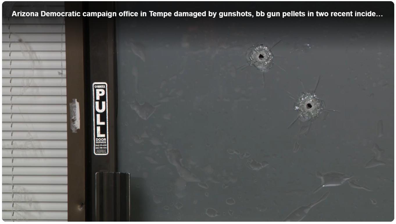 Cảnh sát Tempe cho biết các cảnh sát đã phản ứng vào thứ Hai sau khi nhận được cuộc gọi từ công nhân và họ đã quan sát thấy những gì có vẻ là tiếng súng nổ qua cửa sổ phía trước của văn phòng, nơi có chung các nhân viên của Đảng Dân chủ Arizona, chiến dịch tranh cử của Harris và các chiến dịch của Thượng viện và Hạ viện nhằm thúc đẩy tỷ lệ cử tri đi bỏ phiếu cho đảng vào tháng 11.