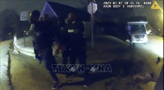 Hình ảnh trong đoạn video về vụ 5 cảnh sát đánh chết người da màu Tyre Nichols ở thành phố Memphis, bang Tennessee . Ảnh: AFP