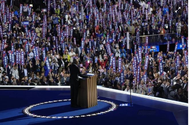 Trong bài phát biểu, ông nói rằng bà Harris “sẽ không tập trung vào vấn đề của riêng mình, mà bà ấy sẽ tập trung vào vấn đề của các bạn”.
