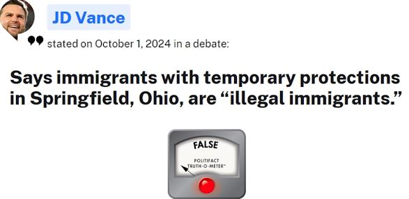 Vance said immigrants in Springfield, Ohio, are "illegal immigrants."