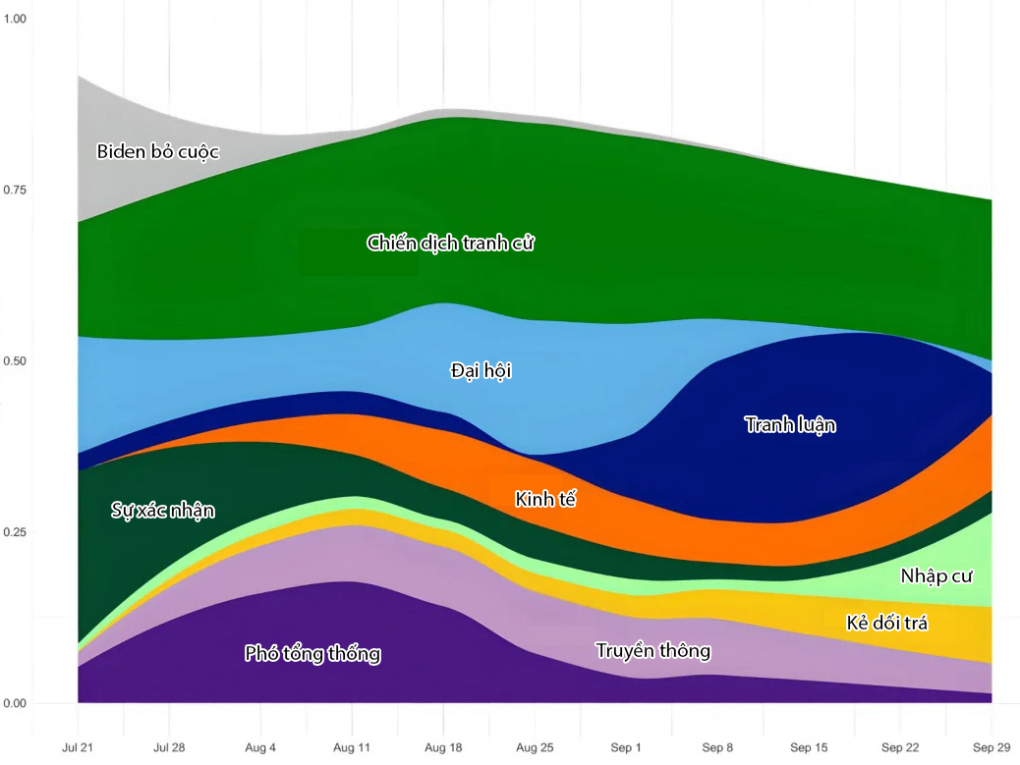 Mức độ chú ý đến các ứng viên tổng thống năm nay cũng thấp hơn so với cùng giai đoạn trong các mùa bầu cử trước. Điều này phần nào có thể do ảnh hưởng từ thời điểm tổ chức tranh luận. Ông Trump và bà Harris tranh luận hôm 10/9, trong khi các cuộc tranh luận ứng viên tổng thống năm 2016 và 2020 đều diễn ra cuối tháng 9.