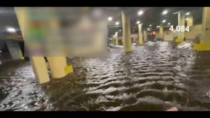 Cảnh quay từ một buổi phát trực tiếp cho thấy ngập lụt v́ băo ở Florida. Ảnh: Mike Smalls Jr.