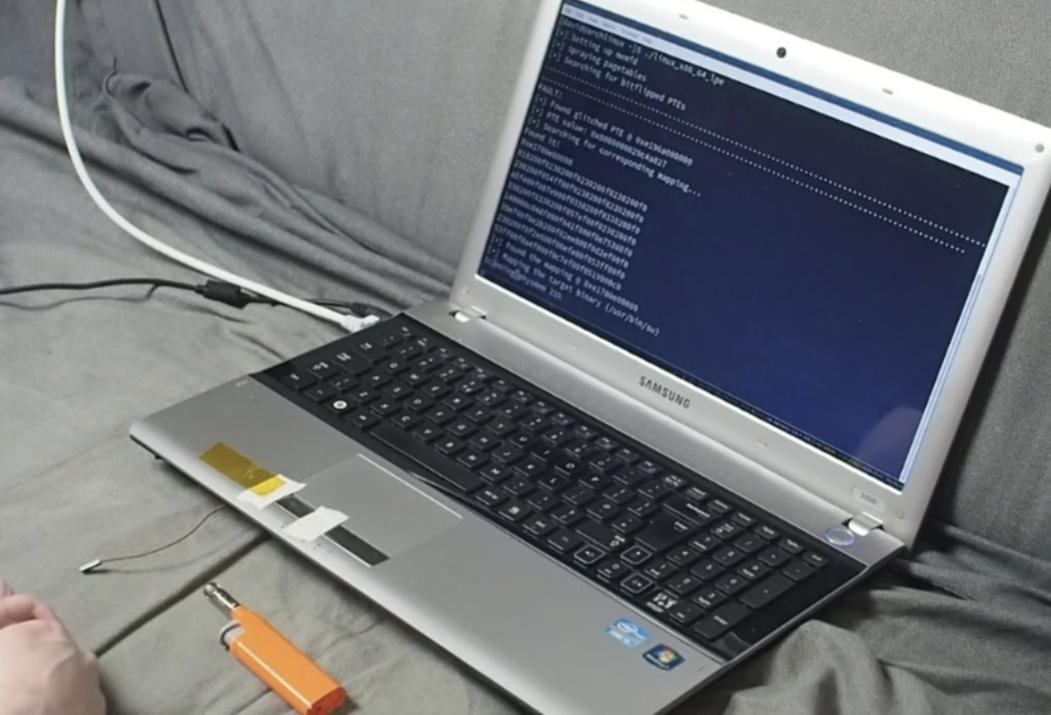 Báo cáo đến từ Techspot cho biết, Buchanan đă thực hiện một kỹ thuật gọi là “tiêm lỗi” (fault injection) thông qua sóng điện từ. Cụ thể, hacker này đă gắn một điện trở nhỏ và ăng-ten vào mô-đun bộ nhớ RAM của máy tính, sau đó sử dụng bật lửa gần ăng-ten để tạo ra các lỗi gọi là bitflip trong bộ nhớ. Kết quả là, anh đă có thể chiếm quyền truy cập root, tức quyền quản trị cao nhất trên máy tính xách tay.