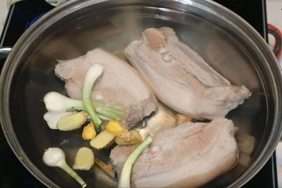 Sau đó, bạn đun sôi một nồi nước khác và bỏ miếng thịt vào luộc cho đến khi thịt chín. Chắc chắn, bạn sẽ có món thịt lợn luộc thơm ngon, hấp dẫn và đẹp như ý.