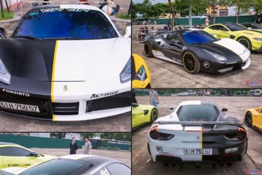 Mới đây, một đại gia Sài Gòn đã bán chiếc Ferrari 488 với giá hơn 9 tỷ đồng. Theo chia sẻ của chủ xe, chiếc xe mới lăn bánh khoảng 24.000 km, thuộc đời 2015 và đăng ký lần đầu vào năm 2018. Xe vốn mang màu sơn đen bóng ở ngoại thất nhưng được chủ xe dán decal hai tông màu đen - trắng nhằm tăng sự cá tính.