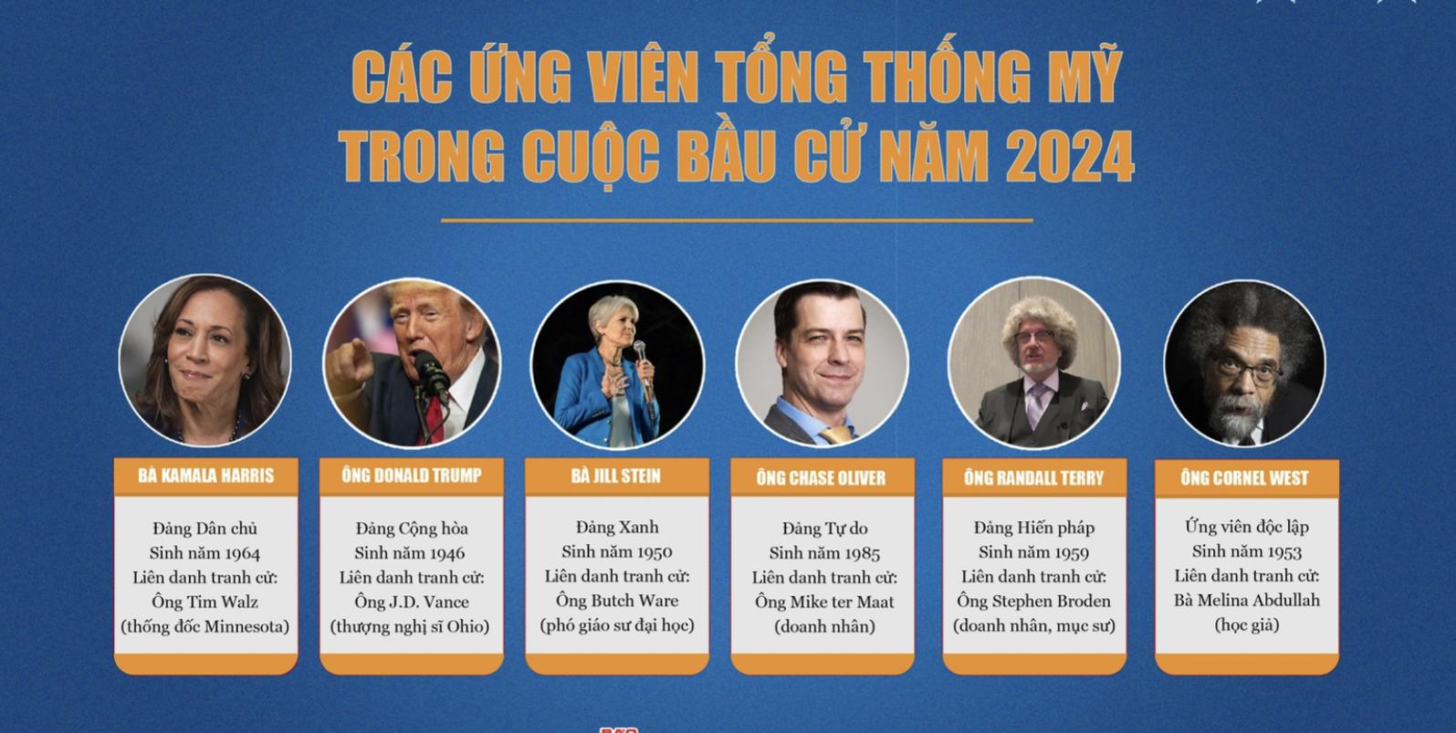 Các ứng viên tổng thống Mỹ trong cuộc bầu cử năm 2024. Đồ họa: Phạm Nghĩa - Thanh Long