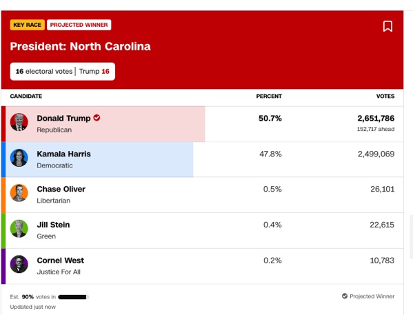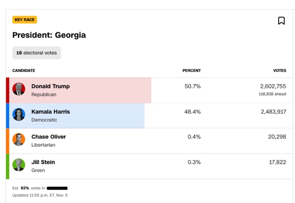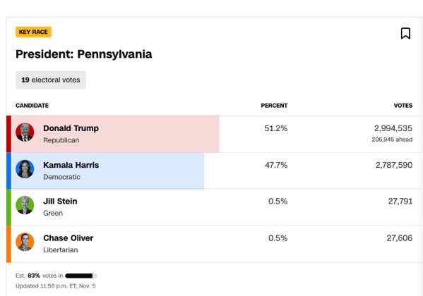 Cập nhập kết quả đếm phiếu 7 tiểu bang chiến trường 5/11/2024 21:00 California Time