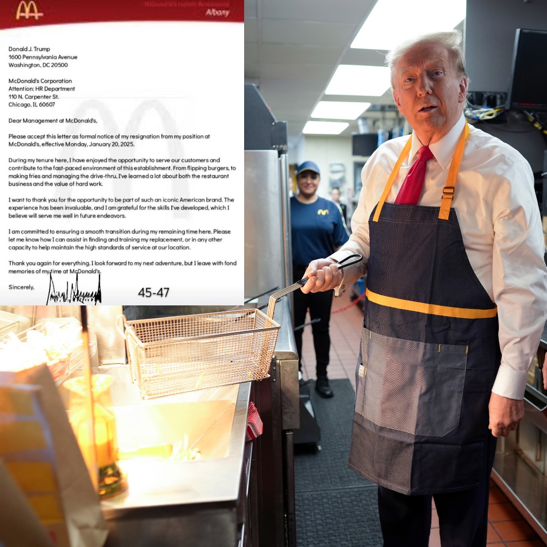 "Xin hãy chấp nhận thư này như thông báo chính thức về việc tôi từ chức khỏi vị trí của mình tại McDonald's, từ ngày 20/1/2025", ông Trump viết gửi cho phòng nhân sự McDonald's và kí tên bên dưới.