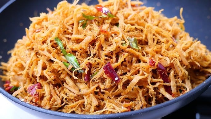 Khô gà đạt chuẩn sẽ có màu vàng đẹp mắt, vị mặn ngọt hài hòa, dai dai, thơm lừng mùi lá chanh và sả. Món này có thể ăn vặt, làm mồi nhậu, hoặc dùng kèm cơm, xôi đều rất hấp dẫn.