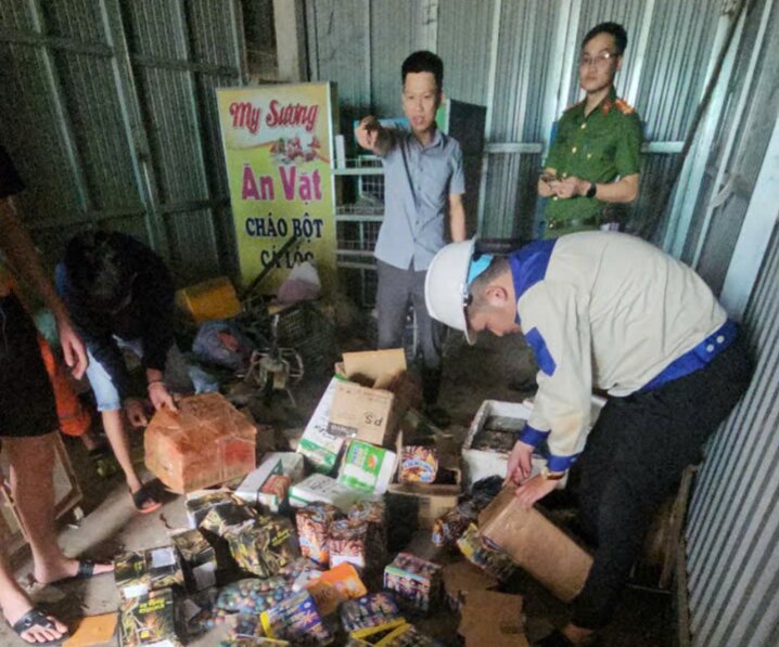 Công an đã tiến hành khám xét nơi ở tại số nhà 38 đường Nguyễn Trãi thuộc KP9, TT Cam Lộ, huyện Cam Lộ, tỉnh Quảng Trị và thu giữ 8 hộp pháo nổ, có trọng lượng hơn 13kg; Khám xét khẩn cấm tại ki-ốt Thiết bị điện nước My Sương thu giữ 122 hộp pháo, có trọng lượng trên trên 200kg pháo cùng nhiều tang vật liên quan đến vụ án.