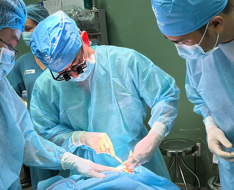 Bác sĩ phẫu thuật cho bệnh nhân. Ảnh: Bác sĩ cung cấp