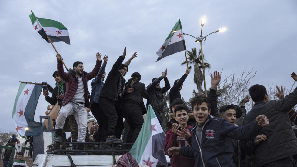 Người dân ăn mừng sự sụp đổ của Bachar Al Assad ở Manbij, Syria, ngày 08/12/2024. AP - Ugur Yildirim