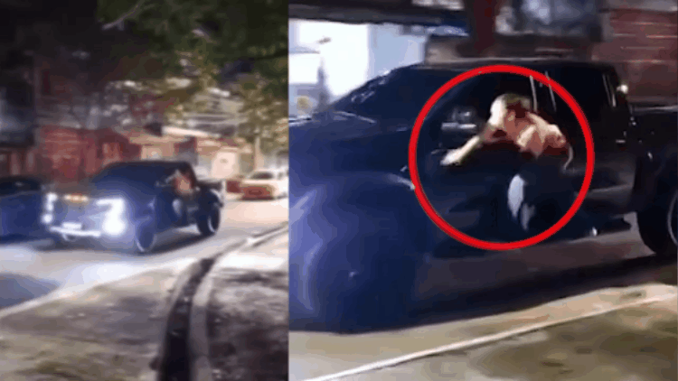 Qua video được những người chứng kiến sự việc ghi lại, có thể thấy Segtowich vô cùng tức giận. Cô đu theo chiếc xe bán tải đang lao vun vút của chồng, đập cửa và la hét.