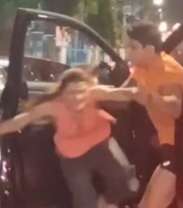 Sau khi dừng xe, người chồng tên Fabrício tiếp tục đẩy căng thẳng lên tới đỉnh điểm khi liên tục xô đẩy vợ ra xa.