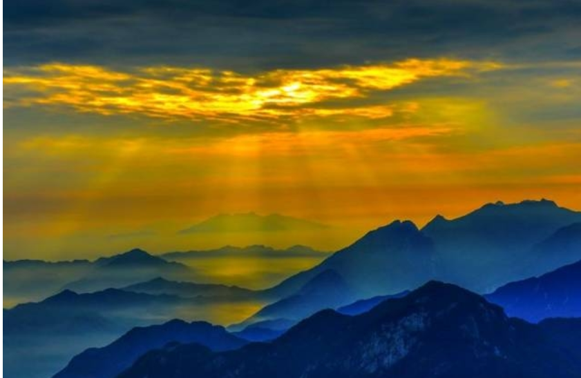 Sau khoảng 30 phút sau khi bình minh đã kết thúc trên đỉnh núi đầu tiên, mặt trời sẽ bắt đầu hiện lên từ đỉnh núi thứ hai do sự chênh lệch độ cao. Thời điểm này, ánh sáng mặt trời đã trở nên chói hơn, bầu trời đã chuyển từ màu cam đậm ban đầu sang một tông màu vàng óng ánh của ánh nắng ban mai. Đây là khoảnh khắc bình minh đẹp nhất trong cả quá trình mặt trời mọc tại làng Liming.