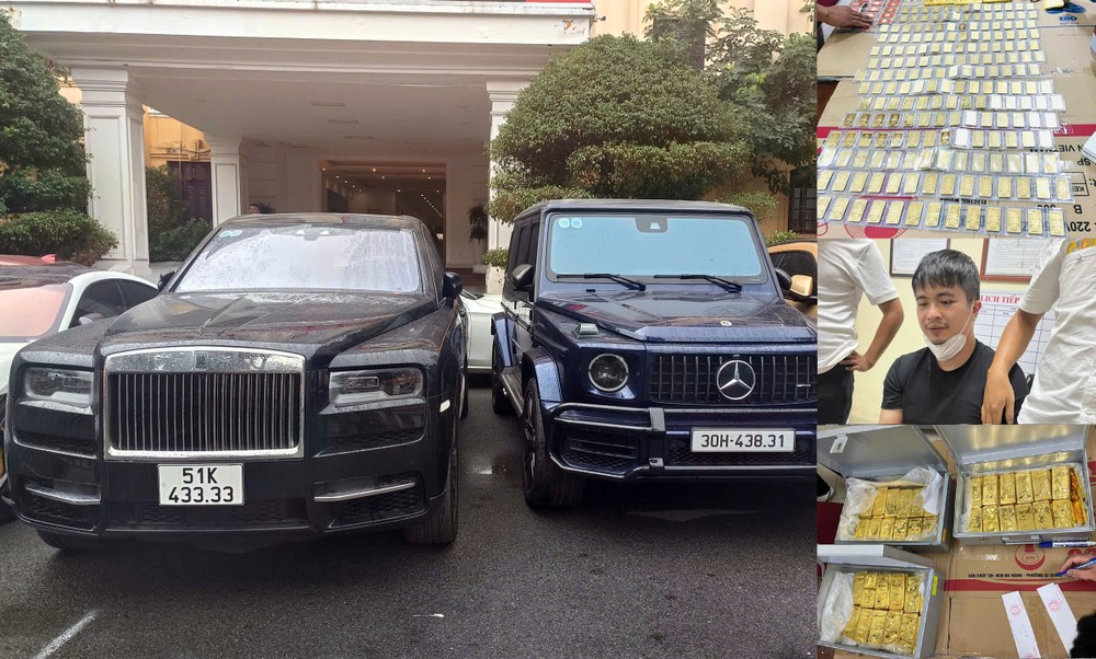 Xe sang, vàng bị thu giữ và đối tượng Phó Đức Nam.