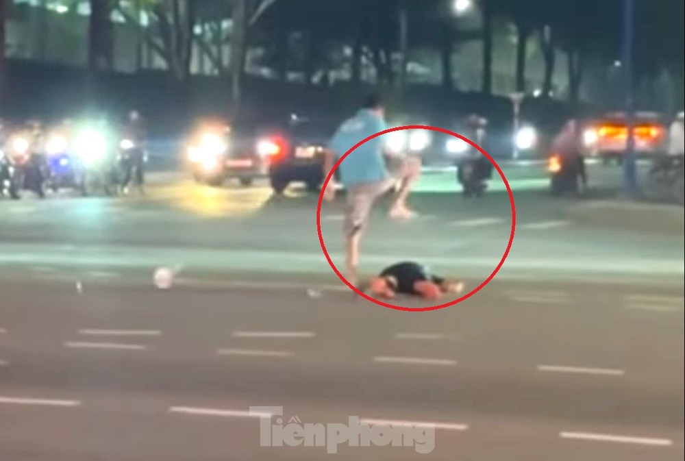 Theo hình ảnh từ clip do người dân ghi lại, anh N.T.B.-người điều khiển một trong hai xe máy kể trên, bị người đi xe còn lại quật ngã xuống đường, dùng tay, chân và nón bảo hiểm đánh liên tiếp vào đầu.