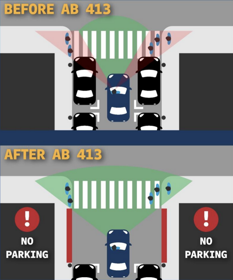 Luật này bắt đầu cho thi hành vào đầu năm 2025 tại California, sẽ cấm đậu xe sát khu vực dành cho người đi bộ. (Ảnh minh họa: KTLA)