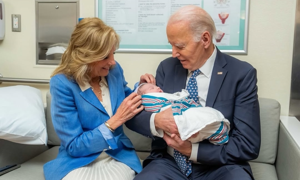 Tổng thống cùng Đệ nhất phu nhân Jill Biden đã ghé trung tâm y tế Cedars-Sinai trong khoảng 40 phút để thăm chắt. Phu nhân Jill đăng lên mạng xã hội ảnh vợ chồng bà bế em bé.