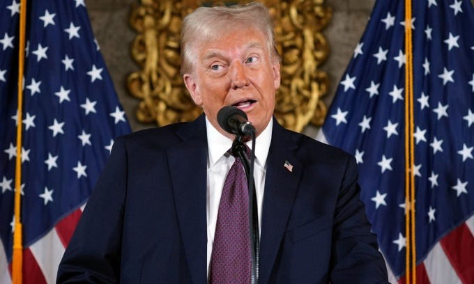 Tổng thống đắc cử Mỹ Donald Trump trong cuộc họp báo ở Mar-a-Lago ngày 7/1. Ảnh: AP